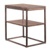 Liberty Furniture Jamestown Chair Side Table in Brown 626-OT1021. Simplify your urban space with the Jamestown chair side table. Crafted of rubberwood solids, metal tubes and mindy veneers, this piece features a tobacco finish, a diamond match veneer pattern, a lower level shelf for additional storage, and an appealing pull out tray perfect for placing your drinks. This modern side table would make a great addition to your contemporary feeling space.