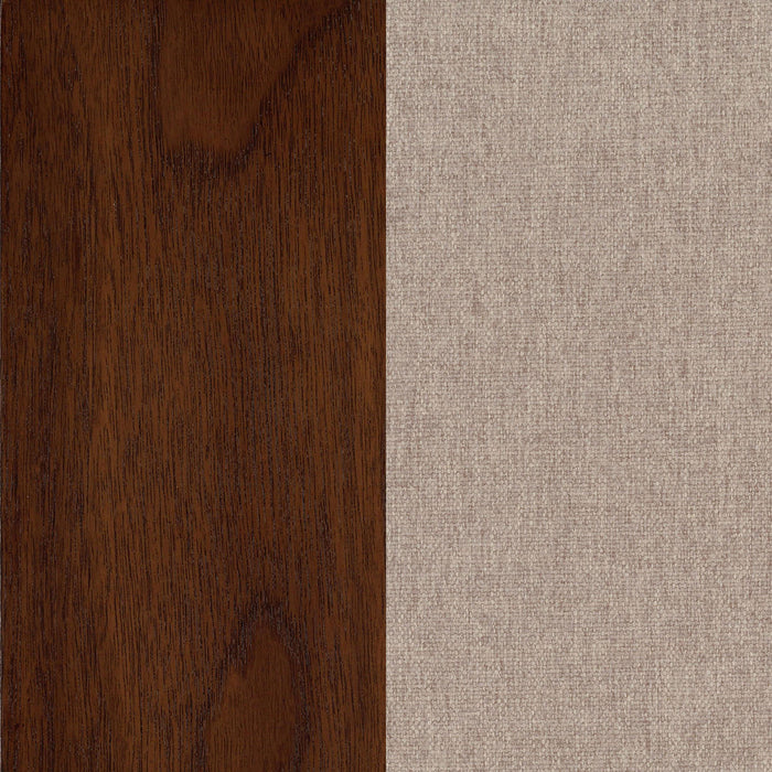 Imagine hosting family gatherings at the holidays and dining with friends around this charming, contemporary seven-piece dining set. Its modern look is established with a robust pedestal base complete with a decorative slat pattern. Its deep, rich mango oak wood grain finish is a lovely complement in casual and more formal spaces, and the table is equipped with an expansion leaf perfect for guests. Chairs are included, offering a padded seat with light brown upholstery, and a slatted back with a gentle curve for extra support and comfort. The set delivers a cohesive, artistic look and feel to center your dining space with both energy and soothing, welcoming ambiance.
